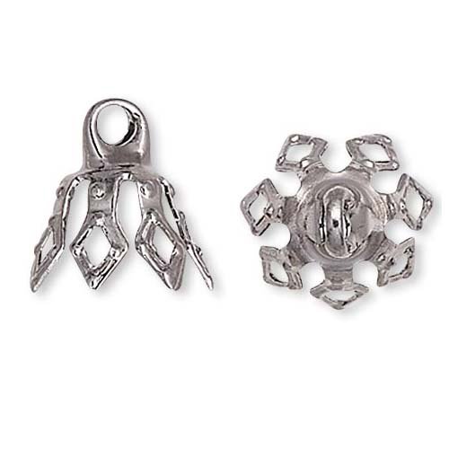 100 Plated Brass Bell Bead End Charm Caps with Loop & 7 Filigree Prong Legs (Gunmetal)