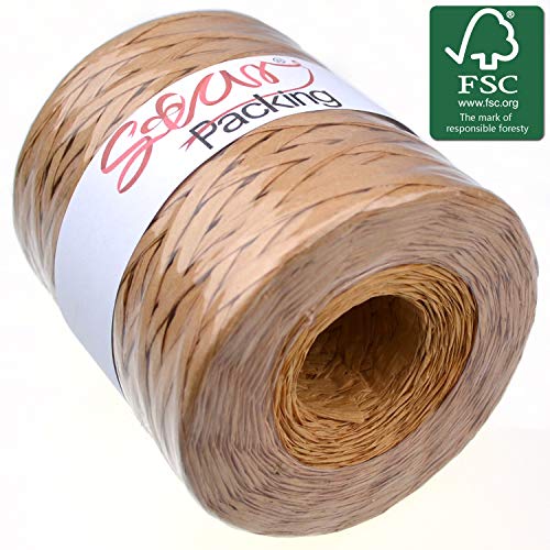 Star Packing Paper Twine 218 Yard Giant Roll | Kraft Matte Paper Ribbon 93 Colors Available | 3/16 Inch Width Paper Raffia Roll, Kraft Color