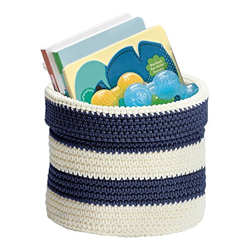 mDesign Knit Baby Nursery Closet Organizer Bin for Lotion, Medicine, Bibs, Books, Toys - Small, Navy/Ivory