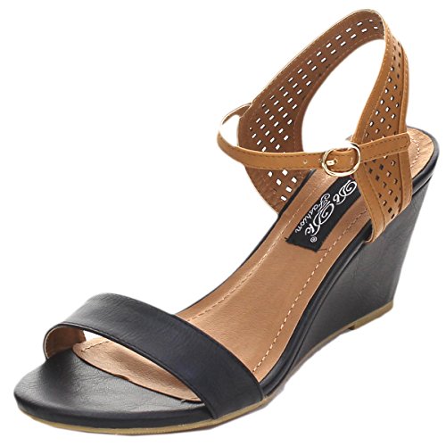 Elegant Footwear Women's Sukky-8 Two Tone Leather Wedge Sandals