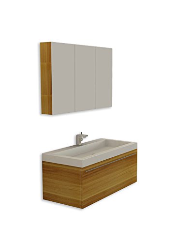 Kokss 48″ wall mount Teak brushed Modern Vanity, Pop-up drain assembly, White acrylic sink, bathroom faucets, Bath Wood veneer cabinet