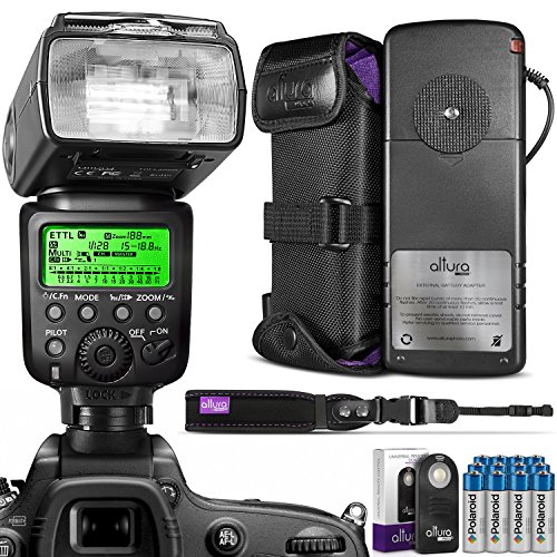 Altura Photo E-TTL Auto Focus HSS Professional Flash for Canon DSLR Cameras + Rapid Fire PRO Flash Battery Pack + Wrist Strap + Universal Wireless Remote Control + Batteries + MagicFiber Cloth