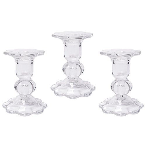 Hosley Set of 3 Glass Taper Candle Holders 3.9 Inch High Classic Decor for Wedding Party Gifts Spa Aromatherapy W1