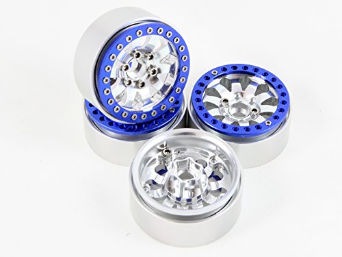 ALIENTAC Blue & Silver 1.9" Alloy Wheel Rim Set for 1/10 RC Crawler SCX10 CC01 - 4PCs