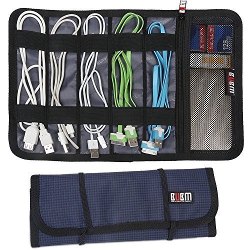 BUBM Travel Cable Organizer, Electronic Accessories Bag Roll up Management for Cord, Plug, USB Flash Drive, Earphone and More, Lightweight and Compact, Dark Blue