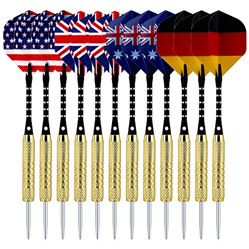 Sametop Darts Steel Tip Darts Set 18 Grams with Flights, Aluminum Shafts, Brass Barrels and Dart Sharpener (12 Packs, 15 Packs)