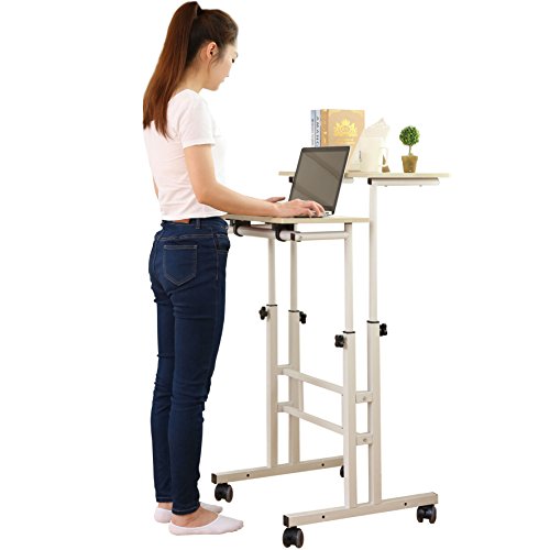 SDADI 2 Inches Carpet Wheels Mobile Standing Desk Stand Up Desk Height Adjustable Home Office Desk with Standing and Seating 2 Modes 3.0 Edition, Light Grain S001WFLT