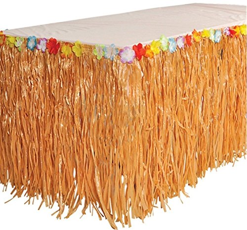 Luau Grass Table Skirt w/ Tropical Flowers (1 per package)