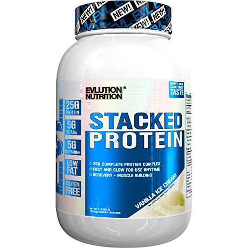 Evlution Nutrition Stacked Protein Protein Powder with 25 Grams of Protein, 5 Grams of BCAA’s and 5 Grams of Glutamine (Vanilla Ice Cream, 2 LB)