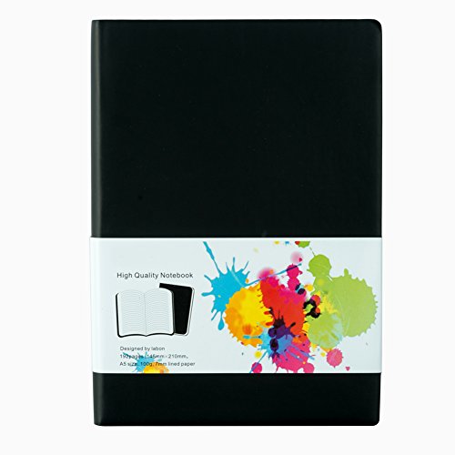 LABON'S Journal Notebook A4/A5/A6/ Ruled Diary Colored Edges PU Leather Softcover (A5,Black)