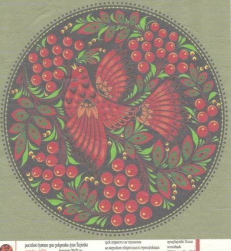 Rice paper Plate decor red bird rowan for decoupage made in Russia, 7.87 x 8.7 inches