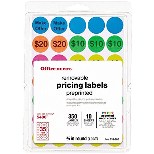 OfficeMax/ Office Depot Removable Preprinted Garage Sale Labels, 3/4 Diameter, Assorted Neon Colors, Pack Of 350
