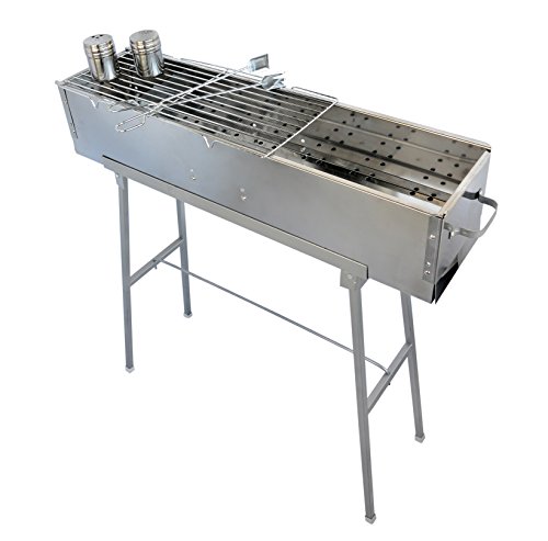 Party Griller 32” Stainless Steel Charcoal Grill w/ Straight Grid Grate – Portable BBQ Grill, Yakitori Grill, Kebab Grill, Satay Grill. Makes Juicy Shish Kebab, Shashlik, Spiedini on the Skewer