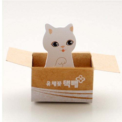 Chois® Self-Stick Notes Cute Animal Cat Post It Memo Pads Bookmark Scrapbook DIY Sticky Notes Pack of 4 White Kitten