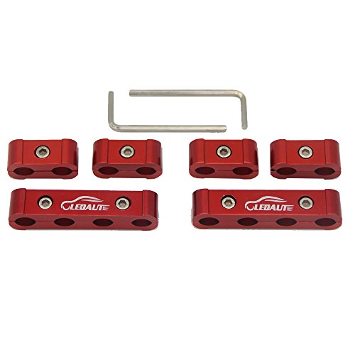 LEDAUT 6pc Spark Plug Wire Separator Divider 8mm 9mm 10mm Red Aluminum Wire Separators