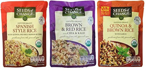 Seeds of Change Organic Heat & Eat Rice Side Dish 3 Flavor Variety Bundle: (1) Quinoa, Brown Rice w/Garlic, (1) Brown & Red Rice w/Chia & Kale, and (1) Spanish Style Rice w/Quinoa, 8.5 Oz Ea (3 Tot)