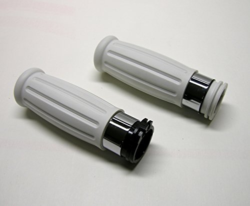 Mr Luckys White “Coke Bottle” Grips with Chrome Ring for 1996 thru 2007 Harley with Stock Hand Controls, Bobber, Chopper, Vintage, Retro, Custom