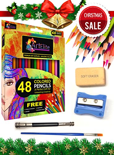 Colored Pencils - 48 Color Pencils Pre-Sharpened Set For Premium Drawing & Coloring + 4 Free Extra Art supplies -Perfect for Kids, Art Students and Professionals