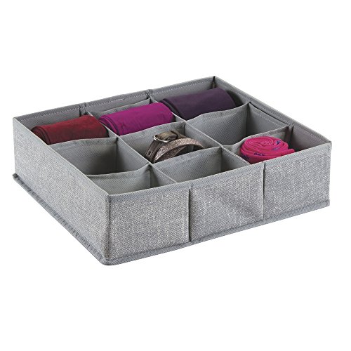 mDesign Fabric Dresser Drawer Storage Organizer for Underwear, Socks, Bras, Tights, Leggings - 9 Compartments, Gray