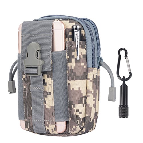 Tactical Pouch - Compact Water-resistant Molle EDC Utility Gadget Gear Tools Organizer - Bundled with Keychain Flashlight£¨ACU)