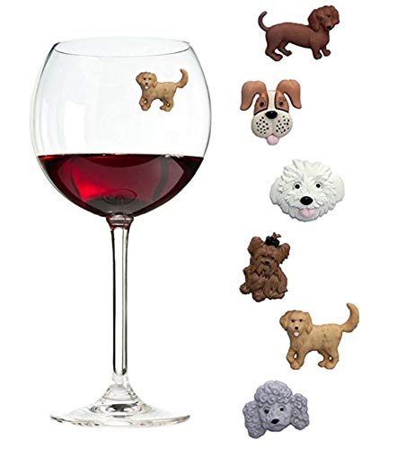 Simply Charmed Magnetic Dog Wine Charms or Glass Markers for Stemless Glasses - Great Birthday or Hostess Gift for Dog Lovers - Set of 6 Cute Puppy Glass Identifiers