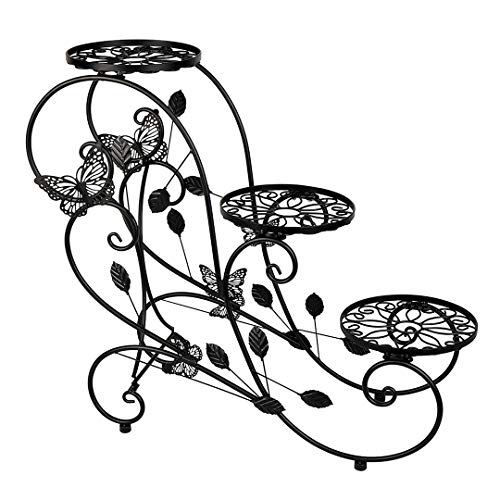 HLC Classic Plant Stand Shelf Holds 3-flower Pot Black