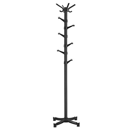 SONGMICS Rotating Hooks Coat Hat Rack Entryway Coat Tree with Base for Coat Hat Purse Jacket Black URCR19B