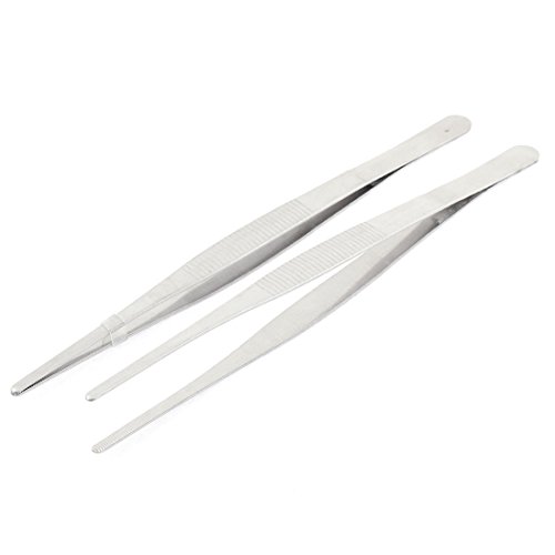 uxcell 8 Inch Length Pointed Tip Stainless Steel Tweezers Silver Tone 2 Pcs