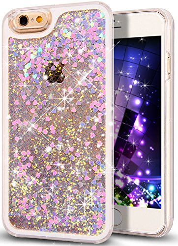 iPhone SE Case,iPhone 5S Case,iPhone SE Liquid Case,NSSTAR Creative Design Flowing Floating Liquid Bling Sparkle Glitter Love Heart Hard Case for Apple iPhone SE & iPhone 5S 5 [Blue+Pink]