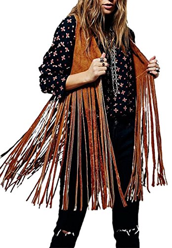 Allbebe Women's Spring Vintage Sleeveless Tassels Suede Solid Vest Waistcoat