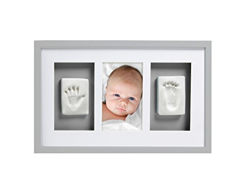 Pearhead Babyprints Newborn Baby Handprint and Footprint Deluxe Wall Photo Frame & Impression Kit - Makes A Perfect Baby Shower Gift, Gray