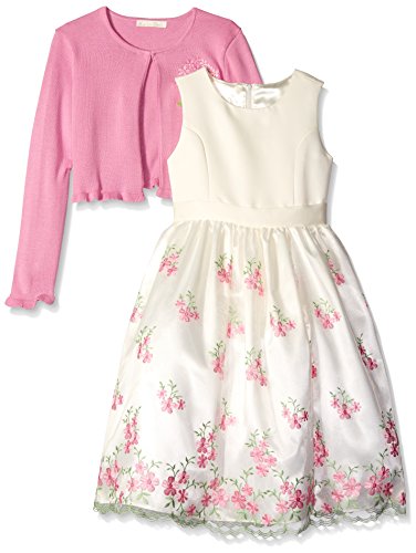 American Princess Little Girls Embroidered Sweater Dress with Cardi, Raspberry, 6