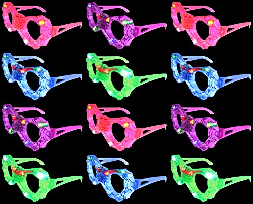 Set of 12 VT Flashing LED Multi Color 'Spider Web' Light Up Show Party Favor Toy Glasses (Colors May Vary)