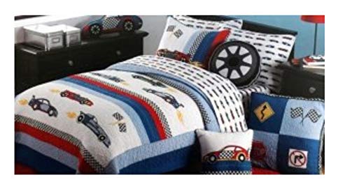 Authentic Kids Applique Quilt Hot Rod Pillow Sham (Standard, 21" X 27") Blue and Red Stripes