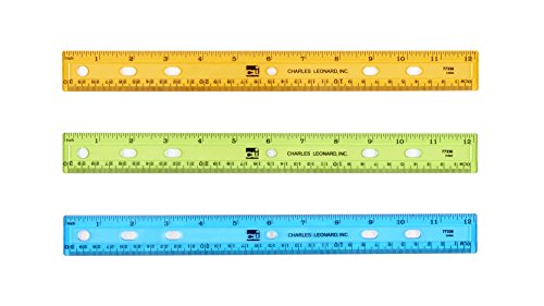Charles Leonard Plastic Metric Ruler, 12 Inches, Translucent Assorted Colors, Set of 36 Rulers (77336)