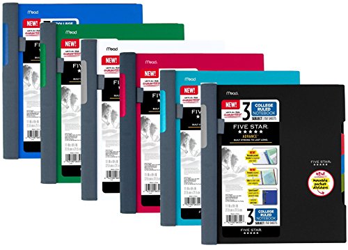 Five Star Advance Spiral Notebook-Standard Size, 3-Subject, 150 College-Ruled Sheets, 11 x 8.5 Inch Sheet Size, Assorted Colors, 6 Pack