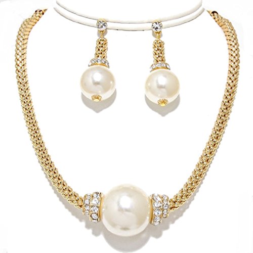 Christina Collection Elegant Gold Mesh Tone Look Chain Cream Pearl Crystal Necklace Earrings Set Gift Bijoux Jewelry