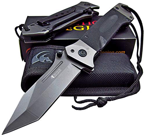 Tactical Legion Heavy Duty Folding Pocket Knife with Sheath: Fast One Hand Opening, 8Cr13MoV Razor Sharp Blade, Great for Outdoor Work Survival Camping Hiking Hunting