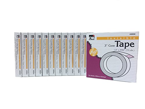 Charles Leonard Invisible Tape, 1/2 Inch Wide x 72 Yards Long, 3 Inch Core, 12 Rolls (49550)