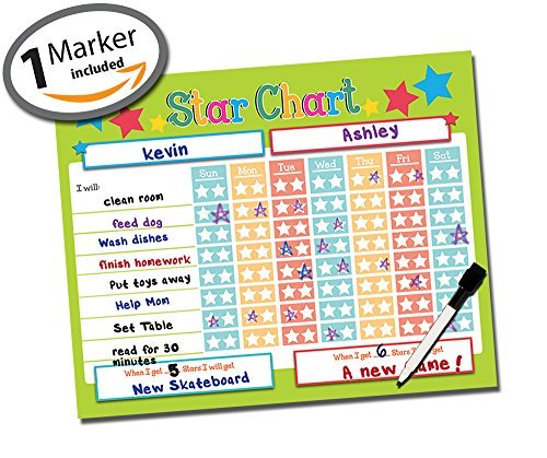 Dry Erase Reward Chore Chart - 16" x 13" - Multiple Children Behavior Incentive Star Charts - Kids Responsibility To Do List - Reusable Toddler Home & Classroom Teaching Resource (Lime)