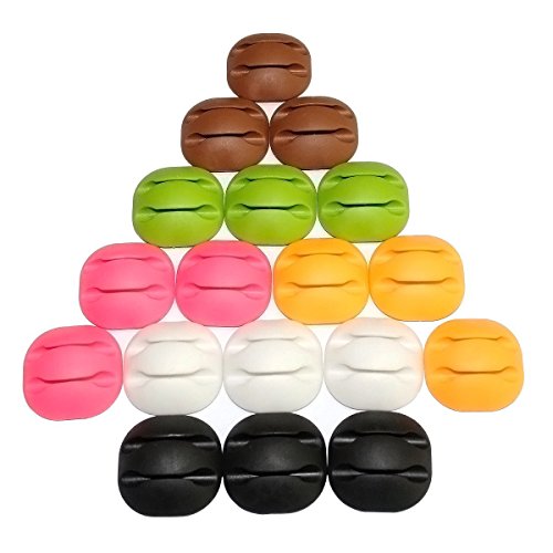 New Version MDW 18 Pcs Assorted Color Cable Clips Organizer and Cord Management System for Desktop Power Cords and Cellphone Cables