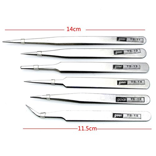 All Purpose Precision Tweezer Set Stainless Steel Anti-Static Tool Kit for Electronics, Jewelry-making, Laboratory Work, Hobbies - 6pcs