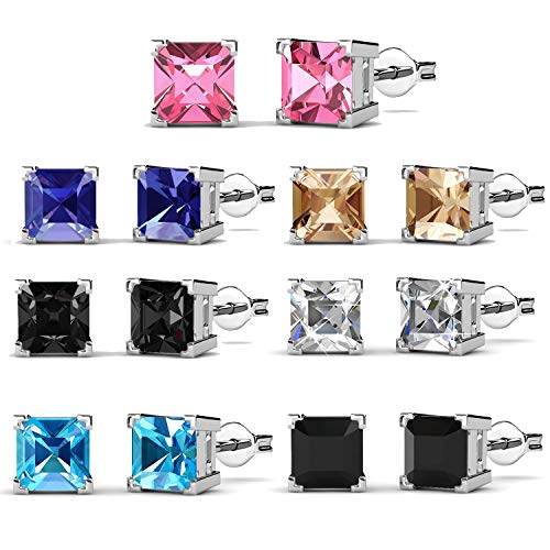 R-timer Womens Fashion Jewelry Stud Earrings Set 18K Whit-Gold Plated with Crystals from Swarovski (Square-claw)