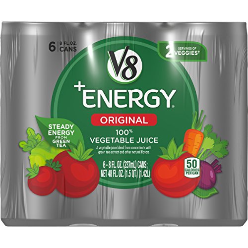 V8 +Energy Healthy Energy Drink, Natural Energy from Tea, 100% Vegetable Juice, 8 Oz Can (4 Packs of 6, Total of 24)