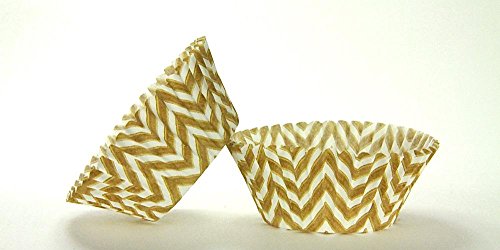50pc Chevron Design - White / Gold Standard Size Cupcake Baking Cups Liners Wrappers