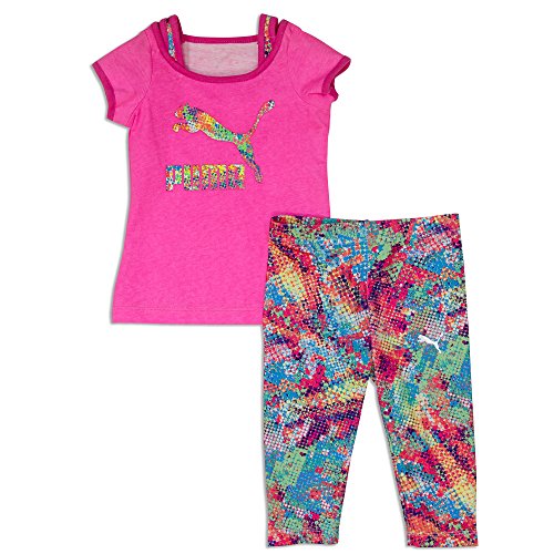 Puma Little Girls 4-6X Cap Sleeve Athletic Tee and Performance Leggings Outfit