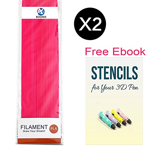 3D Pen Filament Refills - 2 Pack Bundle with 40 Strands Per Package, 80 Strands in ALL - 66FT Long for 3D Printing - 1.75MM PLA Eco-Friendly Plastic - FREE BONUS Stencil Ebook ( Bright Magenta )