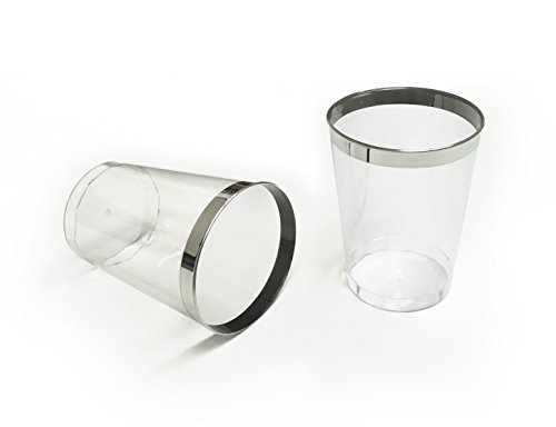 10 piece"OCCASIONS" Silver Rimmed Disposable Plastic tumblers, 10oz