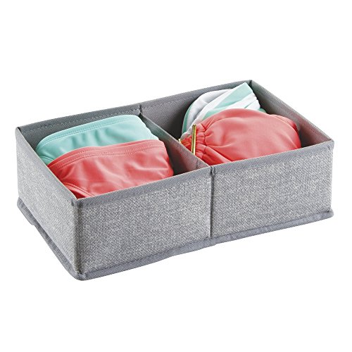 mDesign Fabric Dresser Drawer and Closet Storage Organizer for Underwear, Socks, Bras, Tights, Leggings - 2 Compartments, Gray