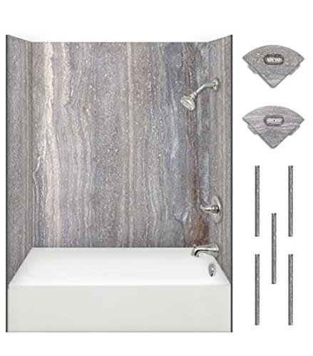 ForzaStone Real Stone TRAVERTINE Bath Wall Kit - Size: Medium; Color: Silver Vein (5 options) - For mounting over existing tile (overlay)